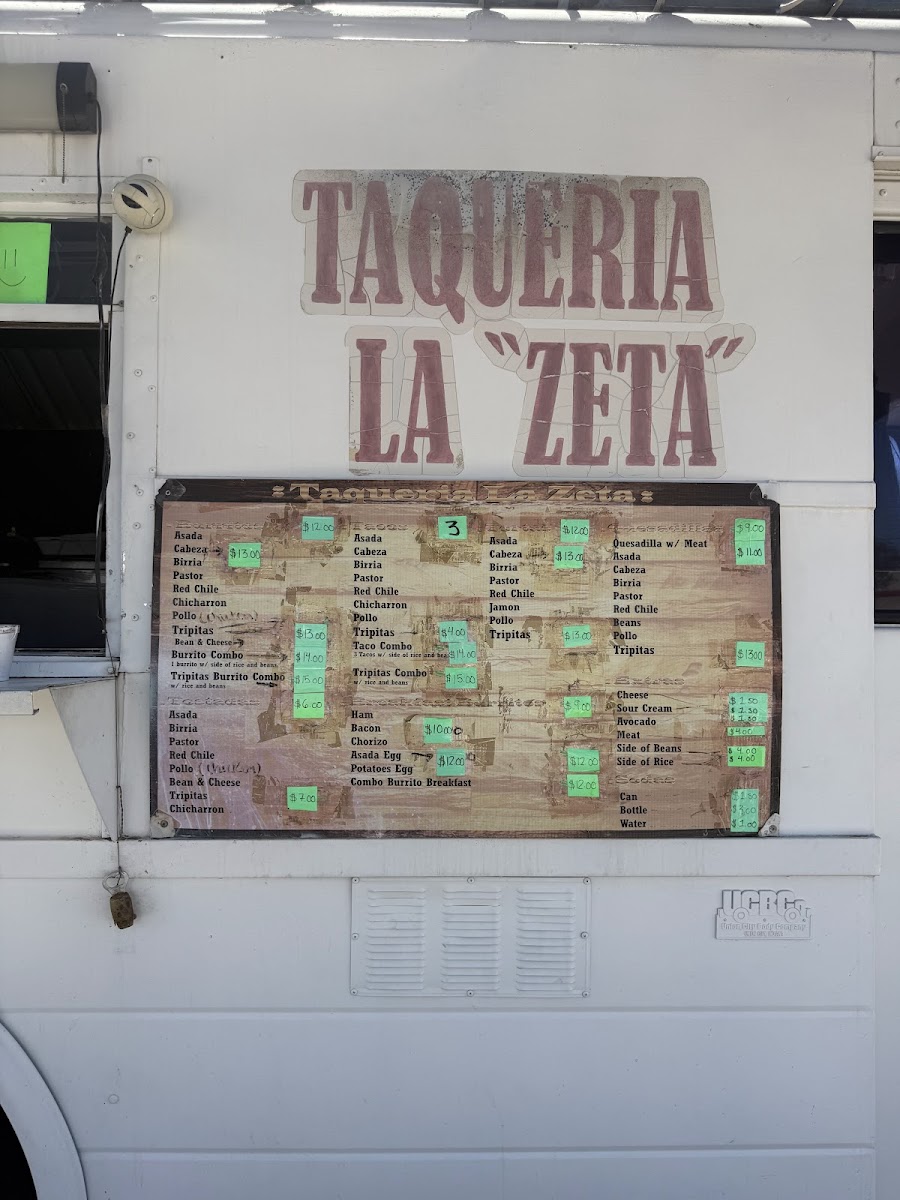 Taqueria La Zeta Menu